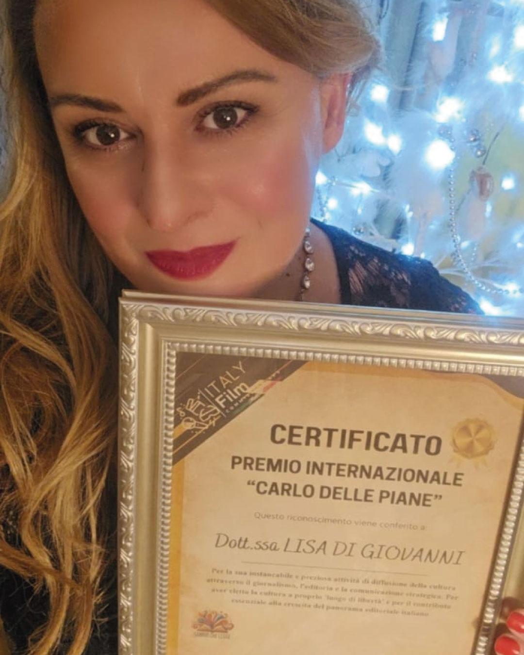 Lisa Di Giovanni, originaria di Teramo vive a Roma da oltre vent’anni. Laureata in Psicologia e specializzata con un Master in HR Executive Manager presso la RBS, lavora da oltre vent’anni in una nota società di telecomunicazioni. Parallelamente, è fondatrice e titolare dell’agenzia P.R. & Editoria, dedicata all’editoria, alla promozione culturale e all’organizzazione di eventi.